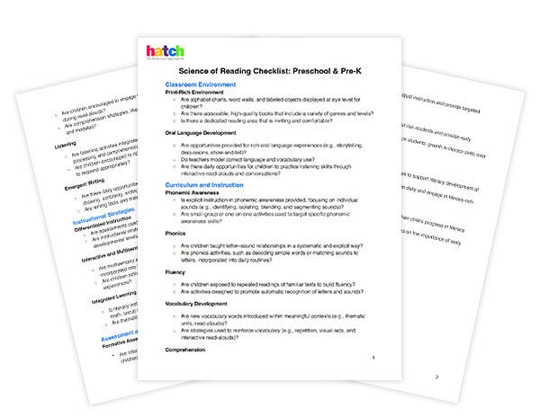 Science of Reading Checklist Preschool & PreK